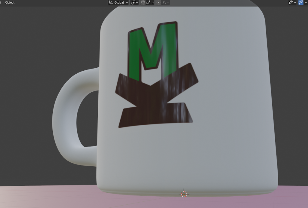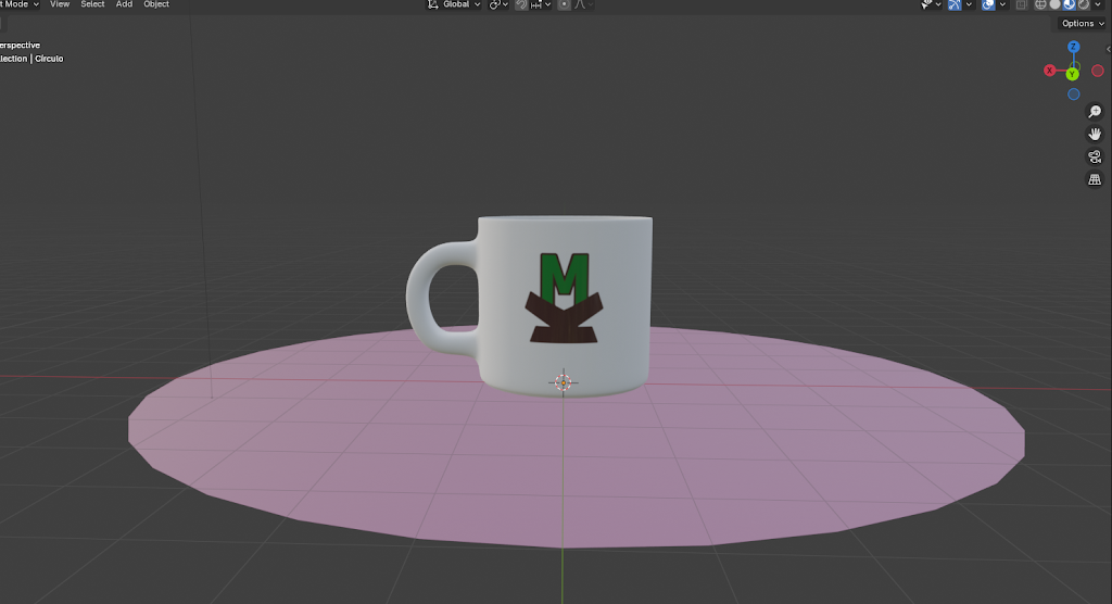 A continuación de la anterior actividad, en esta hemos aprendido cómo colocar el monograma vectorizado en Illustrator en una taza de Blender, como si fuera un logo impregnado. Después de añadir el logo a la taza, era necesario ponerle brillo para que resalte en el mate de la taza.