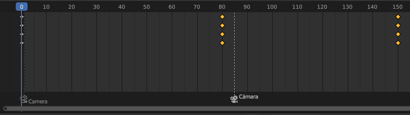 Con respecto a las cámaras, hemos tenido que colocar dos con distintos movimientos para que el render final quede interesante. Por mi parte he hecho una cámara que comienza desde abajo y termina en un punto alto del archivo y, la otra, es una que se mueve en horizontal de un lado a otro.