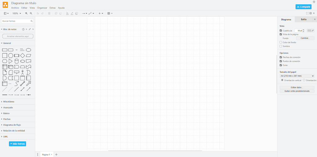 La página a emplear será Draw.io (www.draw.io). Una web gratuita que permite crear diagramas de flujo de forma sencilla.